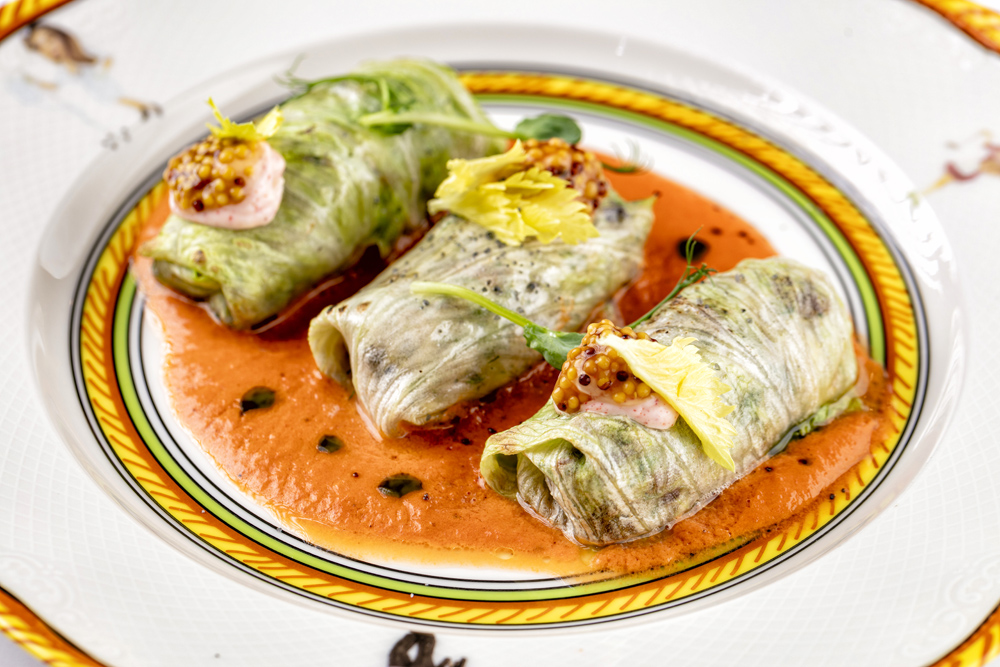 С вялеными томатами, красным луком и сыром, со сливочно-томатным соусом и зернами горчицы